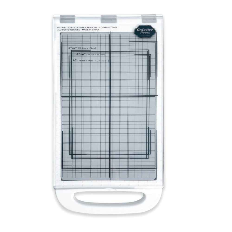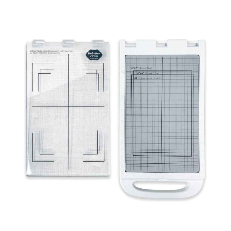Het enige wat je hoeft te doen is je katoenpapier op de gewenste maat op je deksel vastplakken. Inkt je metalen afdrukplaat en plaats die op je magnetische GoLetterPress-platform. Sluit je deksel en haal het platform door je stansmachine. Je project is dan klaar om te kleuren of te versieren.