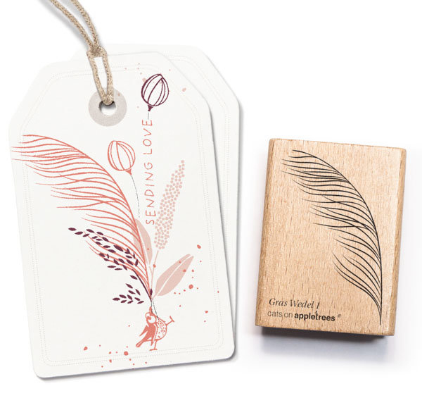 Cats on Appletrees - 28136 - Stempel - Pluk grasThe motif has a size of 15 x 29 mm and is mounted on a wood of 30 x 25 mm.