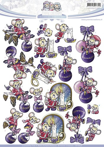 3D Knipvel - Yvonne Creations - Colourful Christmas - Christmas Mice CD10520