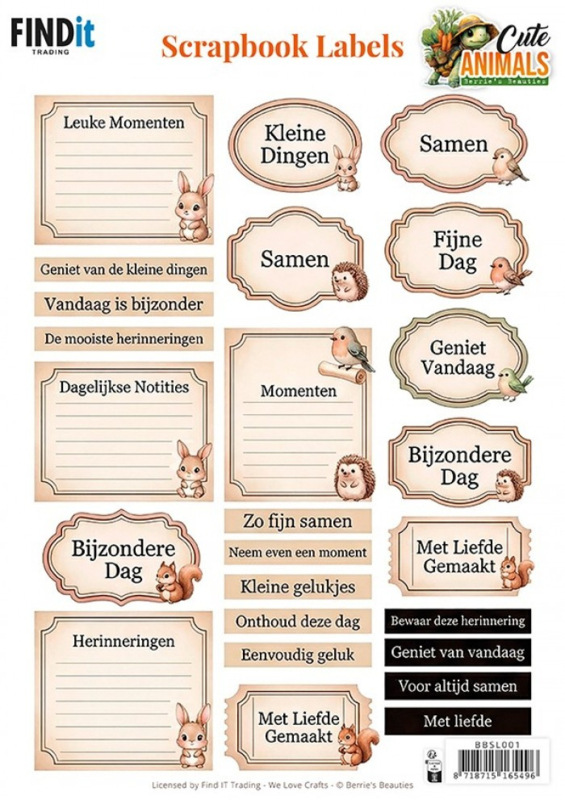 Berrie's Beauties Scrapbook Labels - Cute Animals - NL - BBSL001