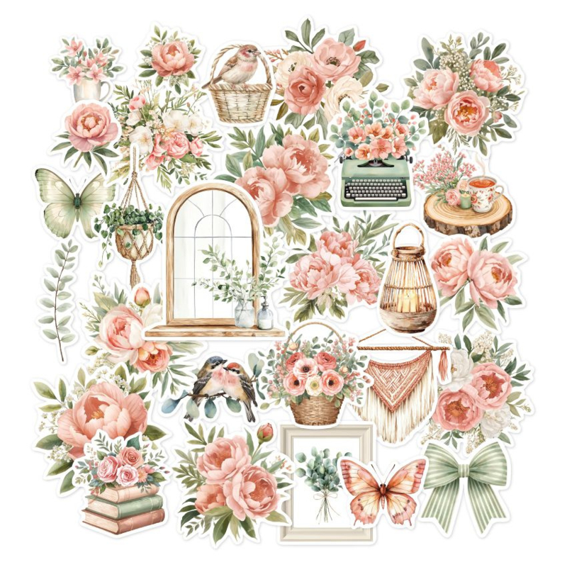 Romantisch tot in de kern met zijn bloemmotieven, subtiele shabby chic-uitstraling en prachtige bloemige vlinders, is de Murmures-collectie perfect om de komst van de lente te vieren. De delicate tinten roze, koraal en groen brengen frisheid en elegantie in al je creaties.