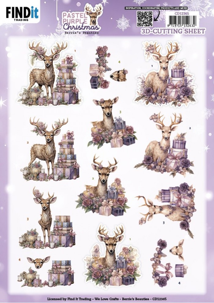3D Cutting Sheet - Berries Beauties - Pastel Purple Christmas - Deer - CD12365